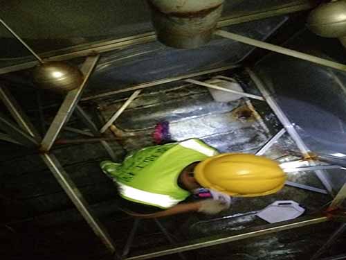 水箱清洗由里向外,均匀地喷涂箱(池)壁表面,可涂刷至入孔口,退出箱(池),盖上孔盖。 水箱清洗洗刷和检查完毕,开排水阀或启动潜水泵,排尽污水并用清水冲清,关闭排水阀或潜水泵。